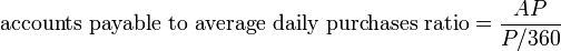 Below you will find descriptions and details for the 1 formula that is used to compute accounts payable to average daily purchases ratios.